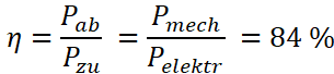 Der Wirkungsgrad des Motors berechnet sich aus: