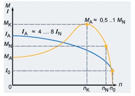 Stromaufnahme und Drehmoment des Drehstromasynchronmotors